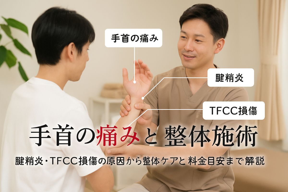 本記事では、腱鞘炎やTFCC損傷、手根管症候群など手首痛の代表的な原因や症状を詳しく解説し、整形外科・整骨院・整体院の役割の違いや受診の目安を明確に示しました。整体では筋膜リリースや関節調整を中心に、前腕や肩まで含めた全身バランスの改善を行い、痛みの軽減と再発予防を図ります。さらに、自宅でできるストレッチやマッサージ、テーピングなどのセルフケア方法も紹介し、日常生活での手首への負担軽減ポイントも解説。料金相場や施術プラン比較、実際の改善事例・患者の声も掲載し、科学的根拠に基づく整体施術の有効性を示しました。この記事を通して、自分の症状に合った最適な改善アプローチと、長期的に手首の健康を守るための知識を得ることができます。